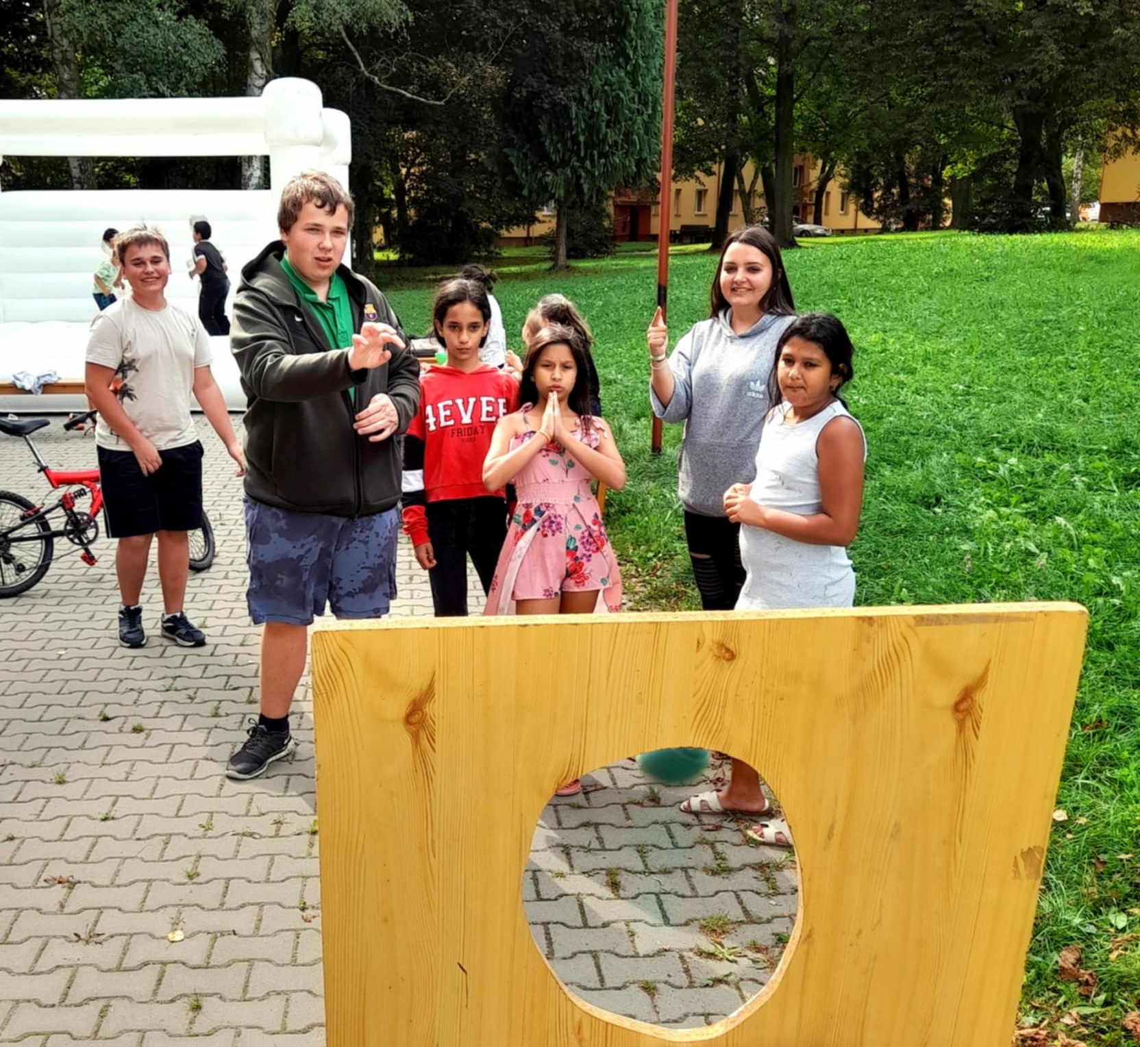 Na začátku září proběhlo pro děti z klubu Oratoř a jejich rodiče zahájení školního roku na zahradě před tímto klubem. Děti si zde mohly vyzkoušet vícero zábavných, tvořivých a sportovních aktivit. Mimo jiné si například vybarvovaly omalovánky, trefovaly se míčkem do otvoru vyřezávaného „panďuláka“ v životní velikosti a také si vyzkoušely chůzi po slackline s oporou vrchního lana. A samozřejmě největší zájem a radost způsobil dětem skákací hrad, na kterém se pravidelně střídaly. Po několika příjemných hodinách naplněných těmito venkovními aktivitami nastal čas balení a úklidu pomůcek. Některé děti nám s tímto pomáhaly, za což jim patří náš velký dík.  A kromě poděkování je také čekala zasloužená odměna v podobě zmrzliny „U Čačera“, která dětem moc chutnala. Zahájení školního roku na zahradě u klubu hodnotíme velmi pozitivně a už se těšíme na další obdobnou akci 😊.